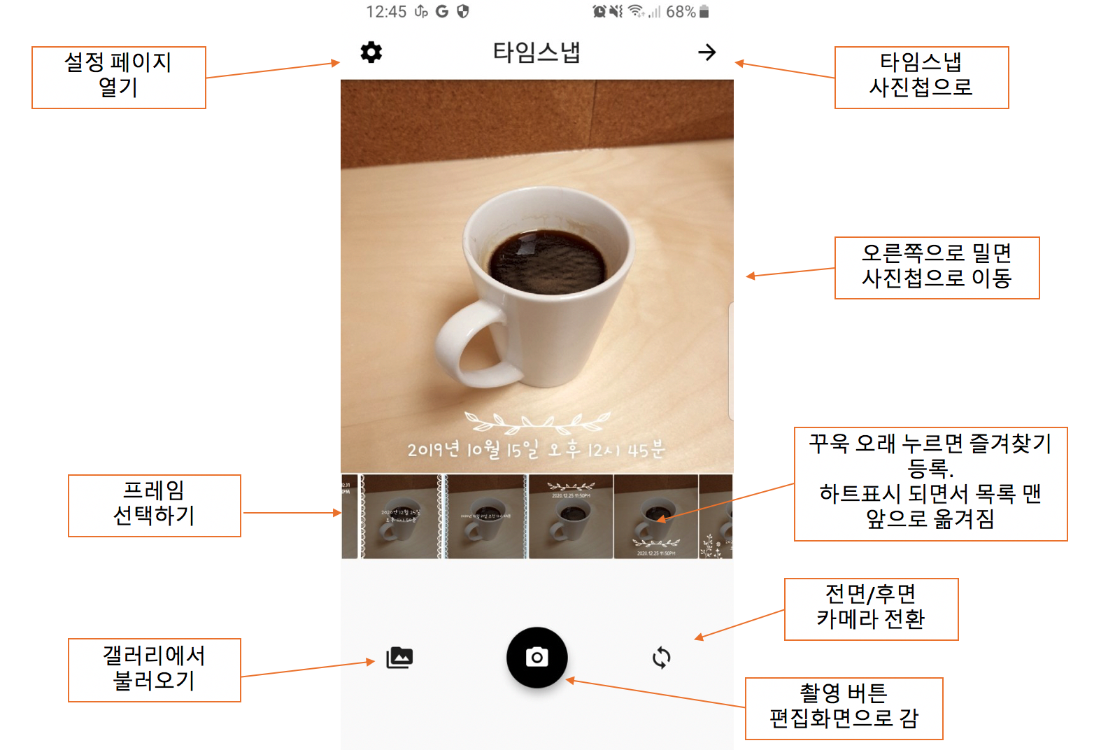카메라 화면 기능 설명