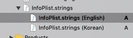 현지화를 하고자 하는 언어를 선택하면, InfoPlist.strings 파일 하부에 언어별로 파일이 하나씩 생깁니다. 이 파일을 클릭해서 원하는 메시지를 입력하면 끝입니다.