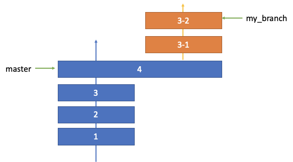 쉽게 설명하자면, 내가 브랜치에서 작업하고 있는 동안 master 에 적용된 커밋들을 나의 브랜치에 적용하기 위해서다. 아래의 그림을 살펴보면, 내브랜치를 commit #2 에서 생성했고, 그 위에 두번 더 커밋을 하였다. 그사이에 마스터 브랜치에는 commit #3과 #4가 추가 되었다.