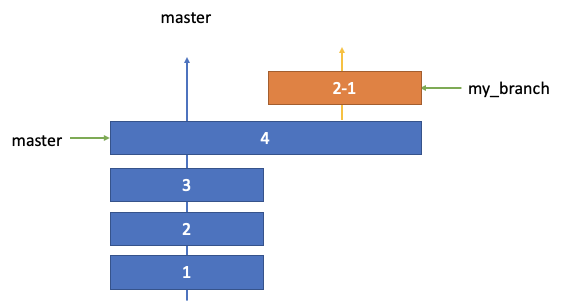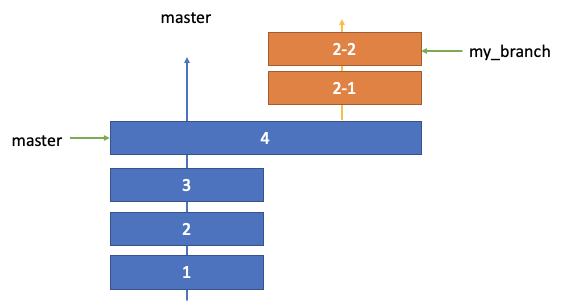 commit 4 에 my_branch의 커밋들을 머지하기 시작